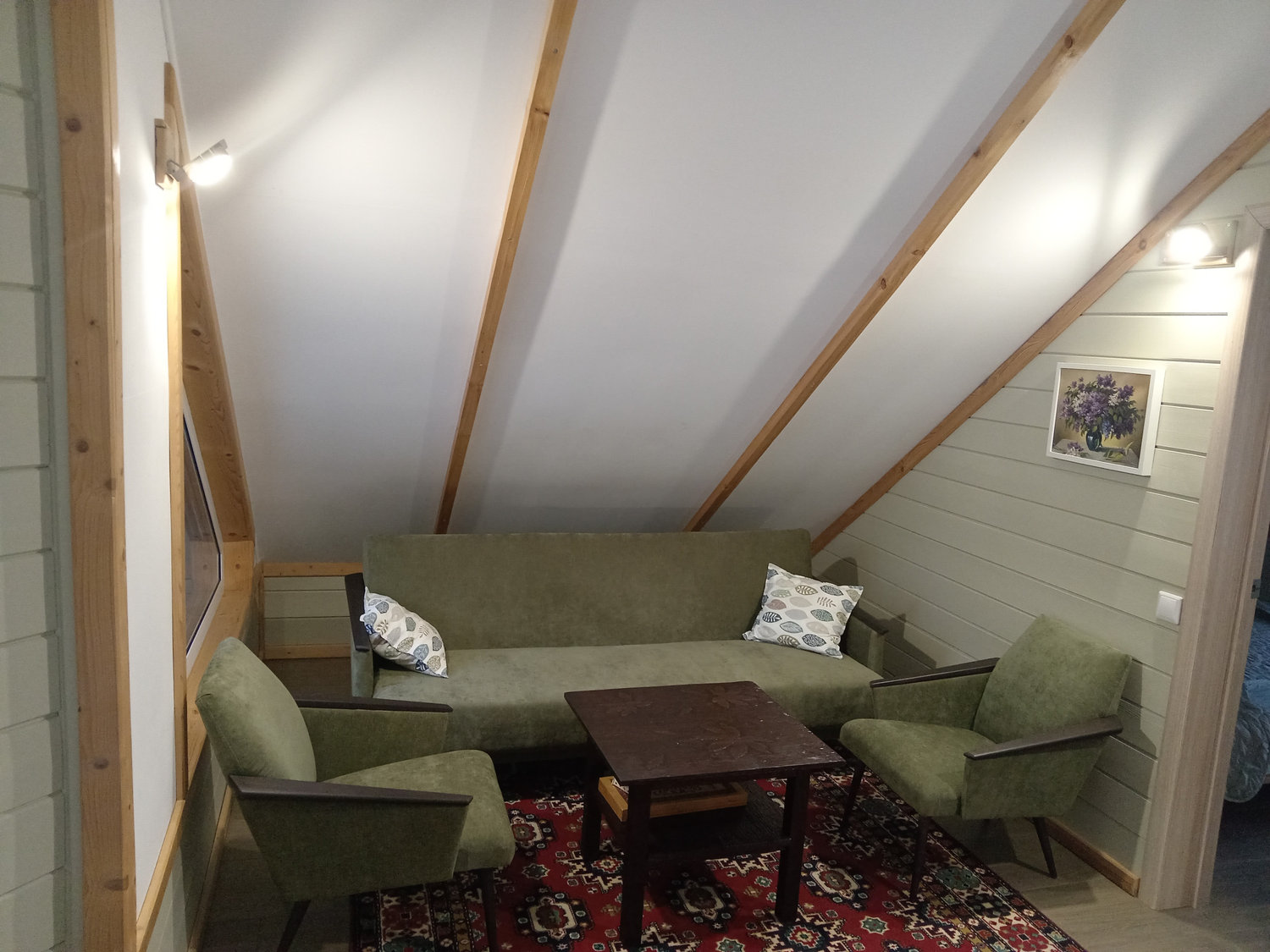 Двухэтажный деревянный коттедж на берегу озера Волго