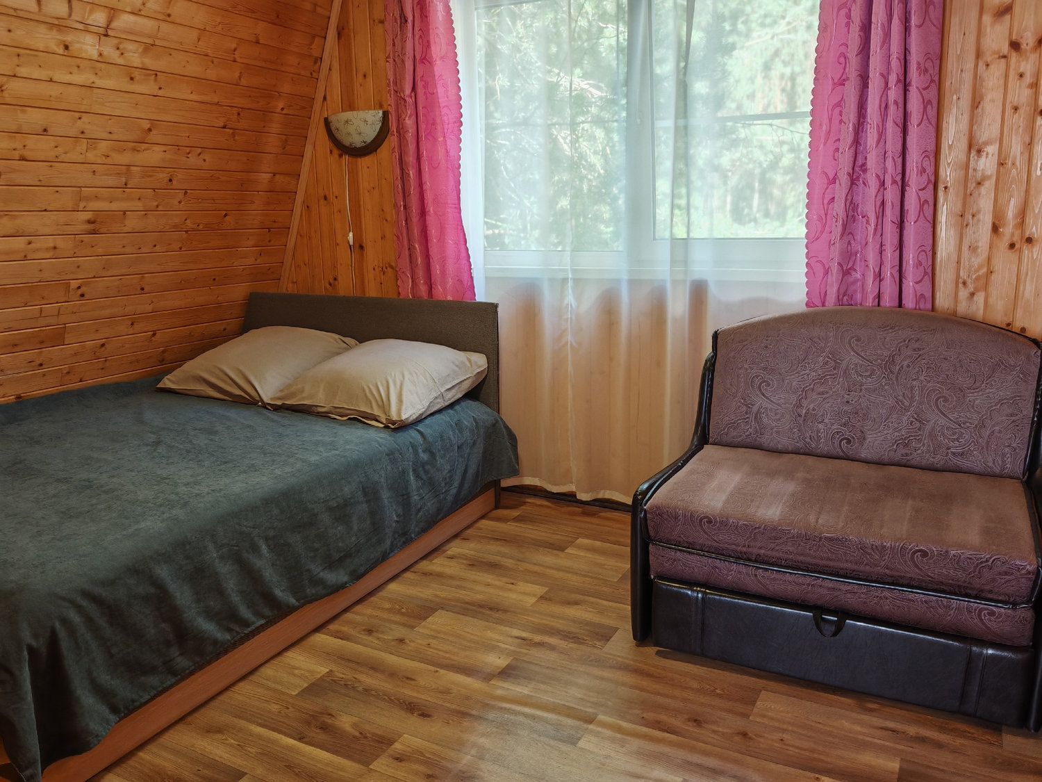 Деревянный дом с террасой у озера Волго в сосновом бору