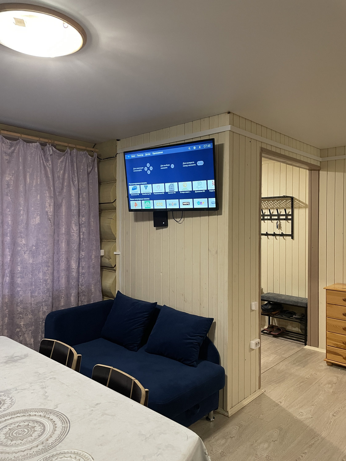 Одноэтажный бревенчатый дом на берегу озера Селигер