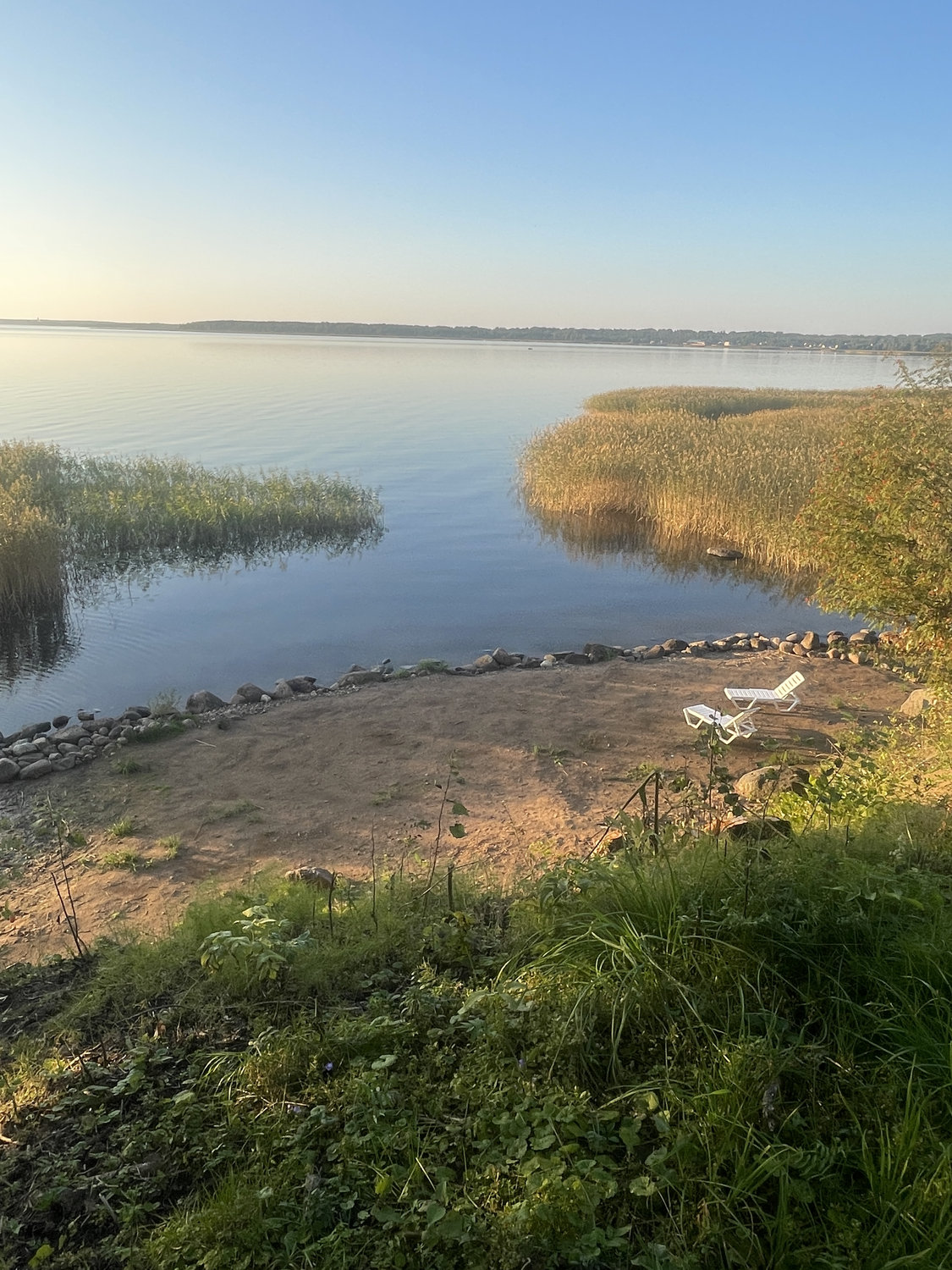 Одноэтажный деревянный дом с террасой на берегу озера Селигер