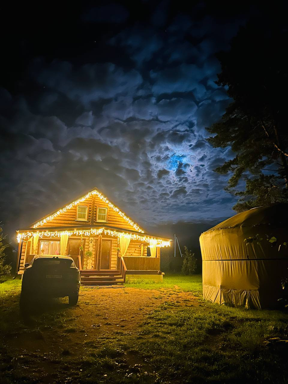 Юрта, где расстилаются коврики для йоги и телесной терапии,