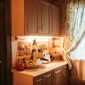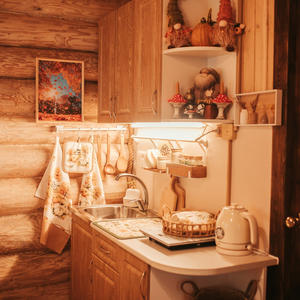 Кухня оборудована всем необходимым. Вы можете спечь пирог в духовке и в кофемашине сварить утром кофе, и встретить утро на веранде под пение птиц.