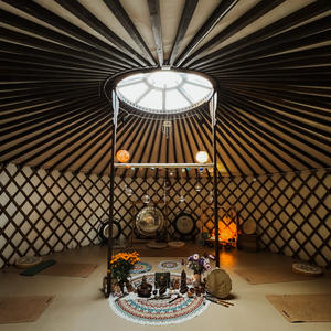 Юрта, где расстилаются коврики для йоги и телесной терапии,