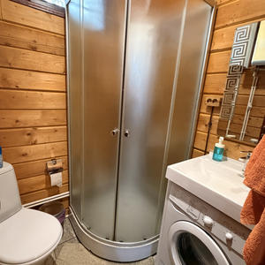 Санузел-душевая кабина,раковина,унитаз, стиральная машина.