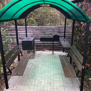 На территории имеется мангальная зона, беседка и место для стоянки машин.