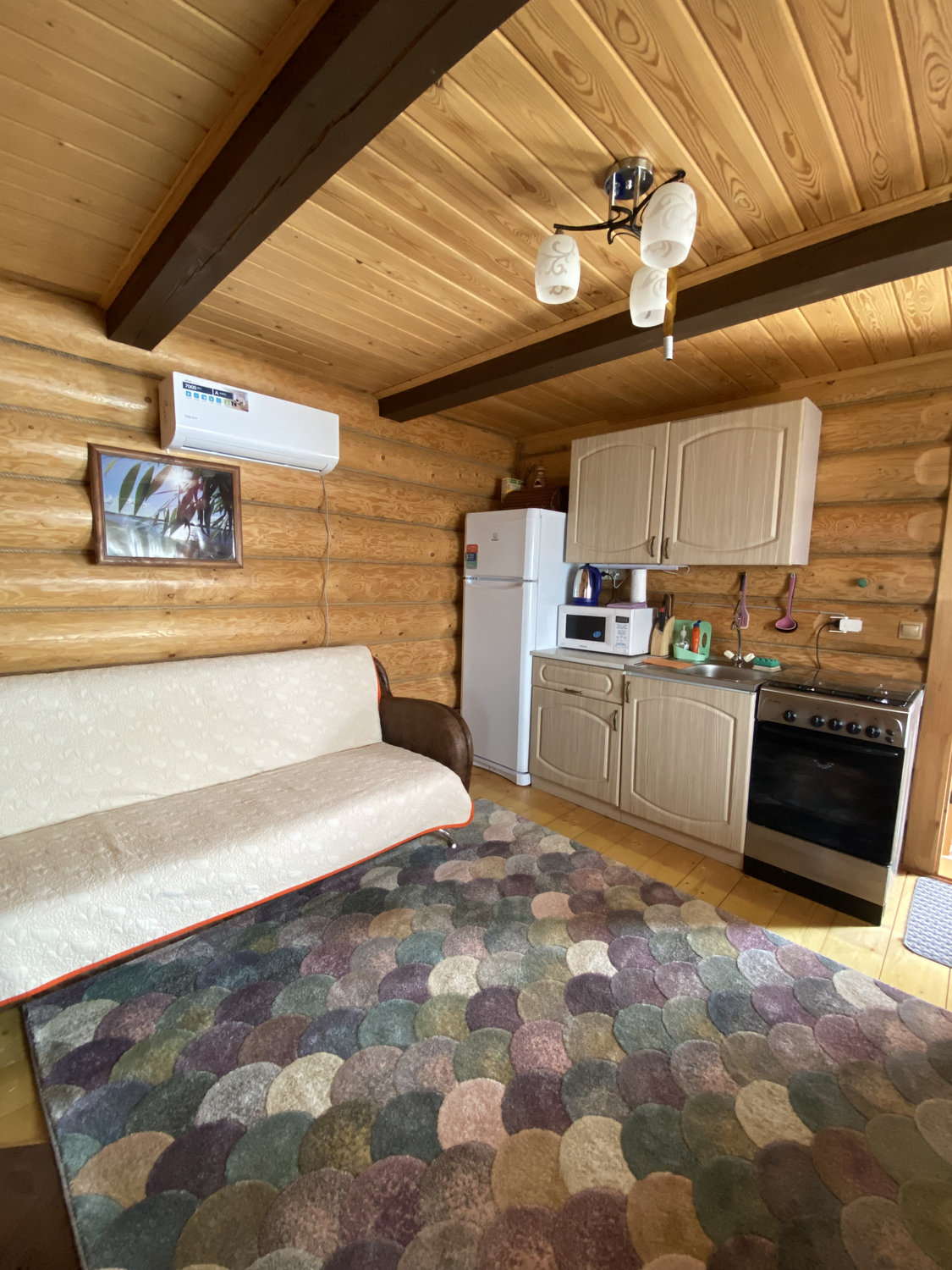 Новые бревенчатые домики на берегу озера Селигер