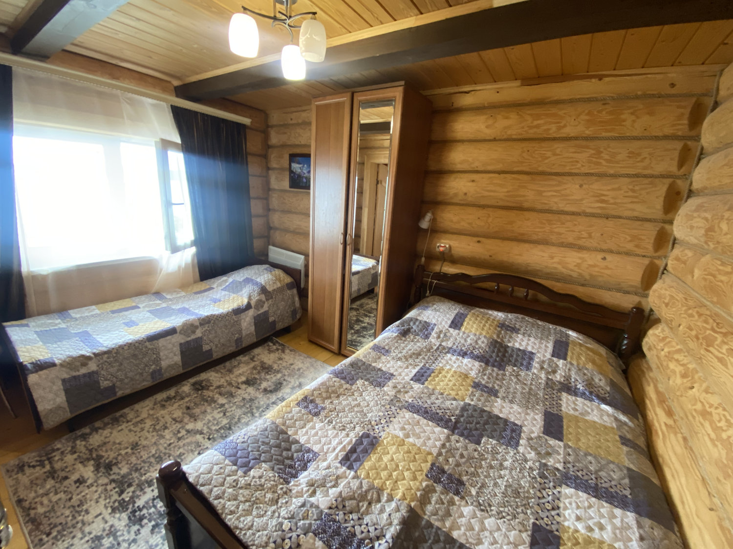 Новые бревенчатые домики на берегу озера Селигер