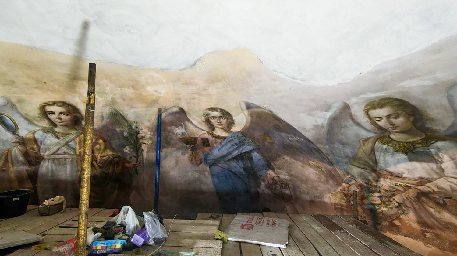 Реставраторы начали восстановление уникальной фрески в куполе Богоявленского собора Ниловой пустыни