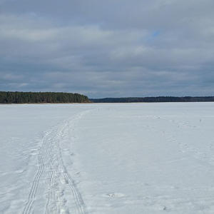 На Селигере под снегом много воды — рыбаки жалуются, что клёва нет, а передвигаться по льду трудно.