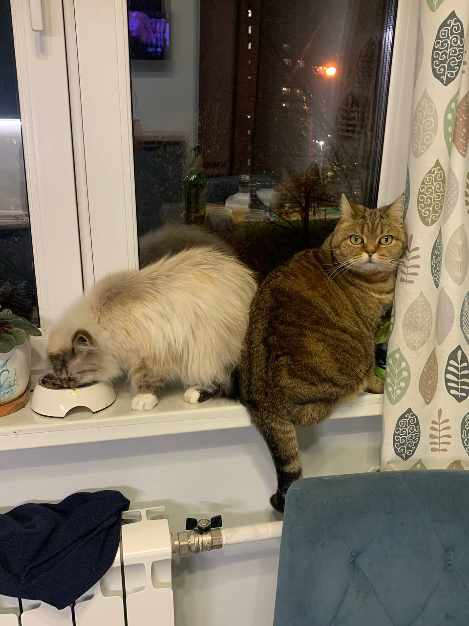 Очередь на ужин. Дусеньку ( зубы удалены) перевели на мягкий корм, Васенька завидует