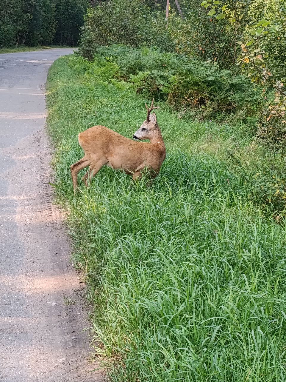 Вот такая красотка гуляет по обочине дороги на подъезде к д.Неприе.Подпускает к себе, никуда не убег...