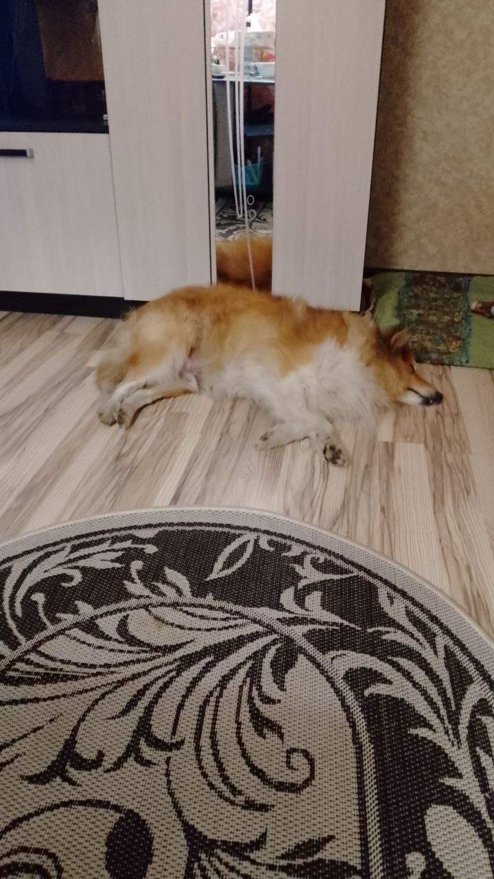 Вот такая красотка гуляет по обочине дороги на подъезде к д.Неприе.Подпускает к себе, никуда не убегает.Подощрение, что не здорова