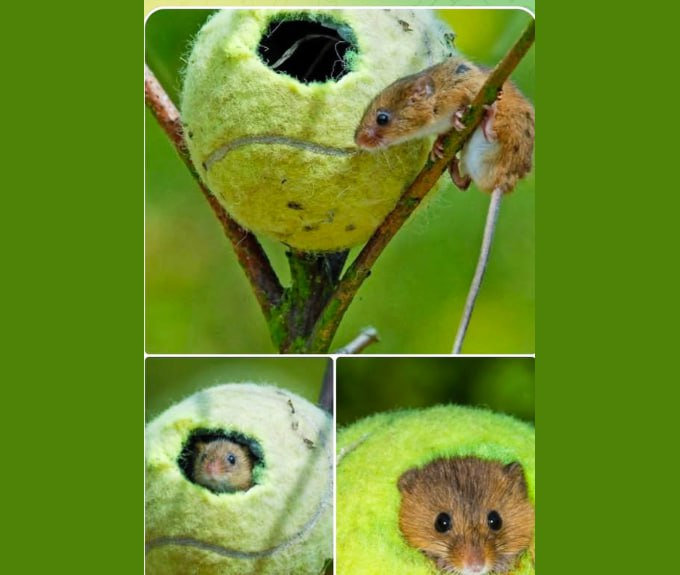 Эти зверьки страдают из-за уничтожения их естественной среды. В мячах вырезают небольшие входы и закрепляют их над землей. Такие капсулы идеально имитируют их природные круглые гнёзда и при этом защищают малышей от хищников.