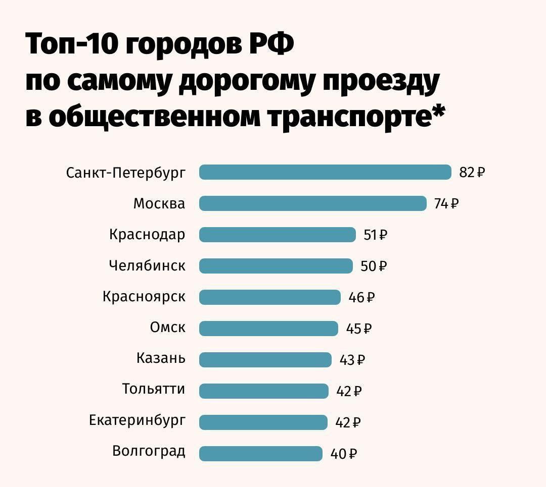 Питер стал самым дорогим городом по стоимости проезда в общественном транспорте. Один раз прокатиться на метро здесь обойдётся в 82 рубля