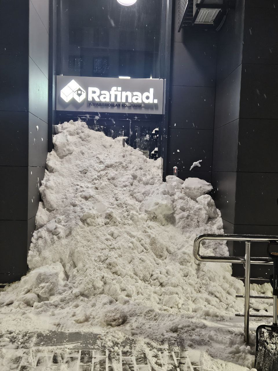 😁 В жилом комплексе "Рафинад" в Химках жильцы засыпали снегом вход в офис управляющей компании, намекая на необходимость уборки во дворах