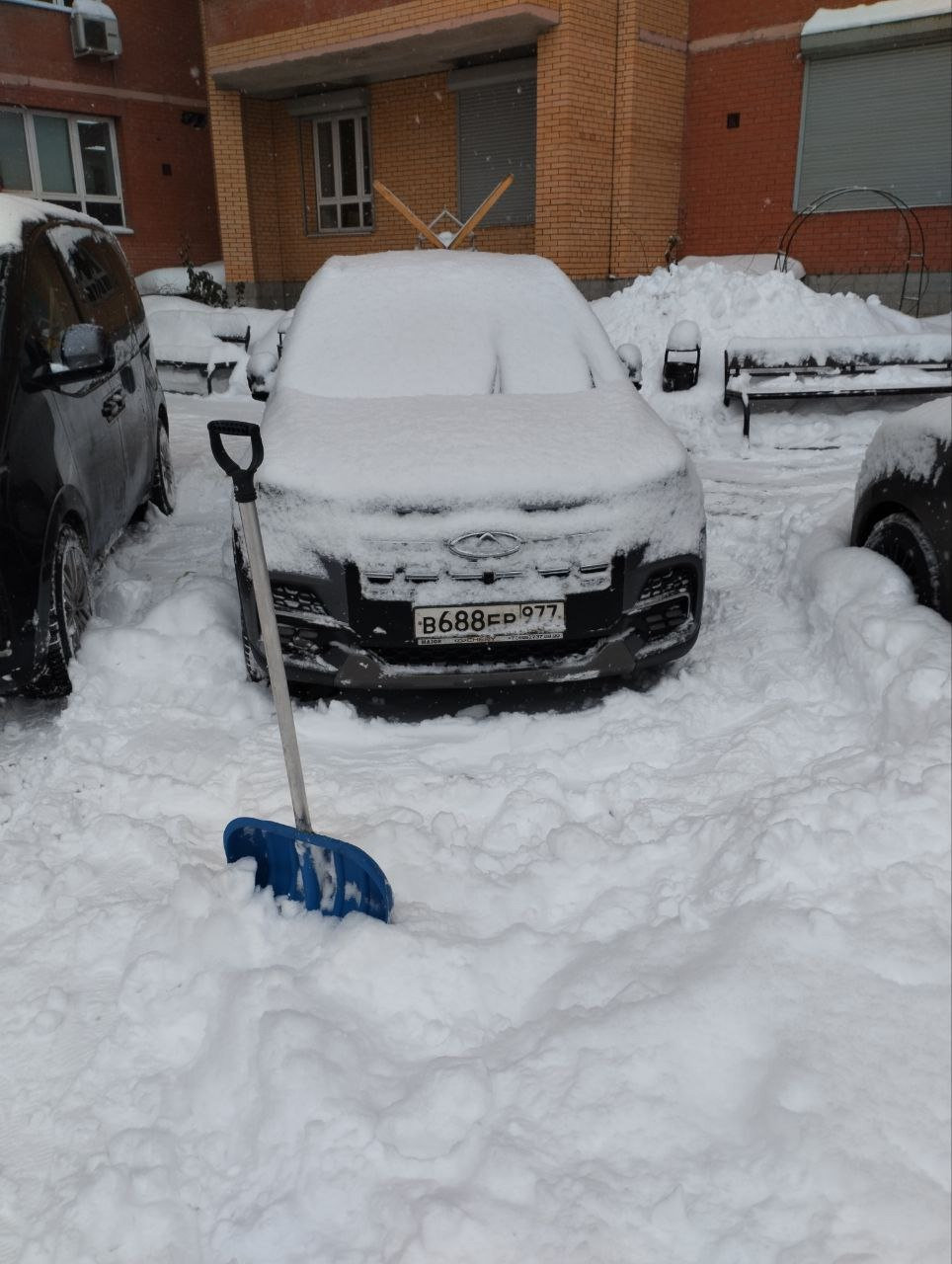 Приехал. Припарковался в сугробе на парковке, включив полный привод. Лопаты еще не было. В машине запахло сцеплением.