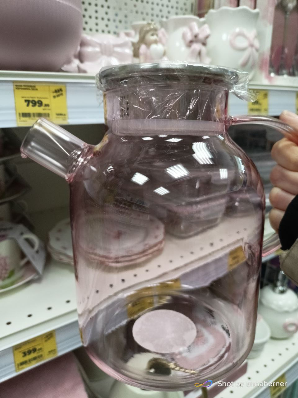 Любителям прозрачных чайников - в Магните началась весна (неожиданно) и много всего розового (внезапно), в том числе нежно розовый чайник (огромный) ))