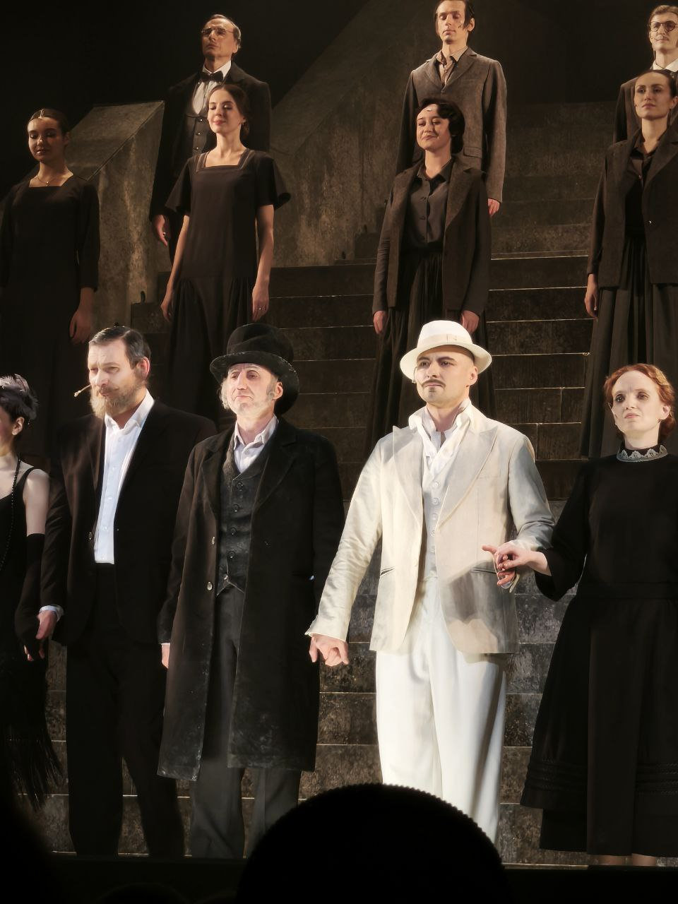 Ари лейтер и Мендель Крик в спектакле Биндюжник и Король в театре музыкальной комедии . Премьера.