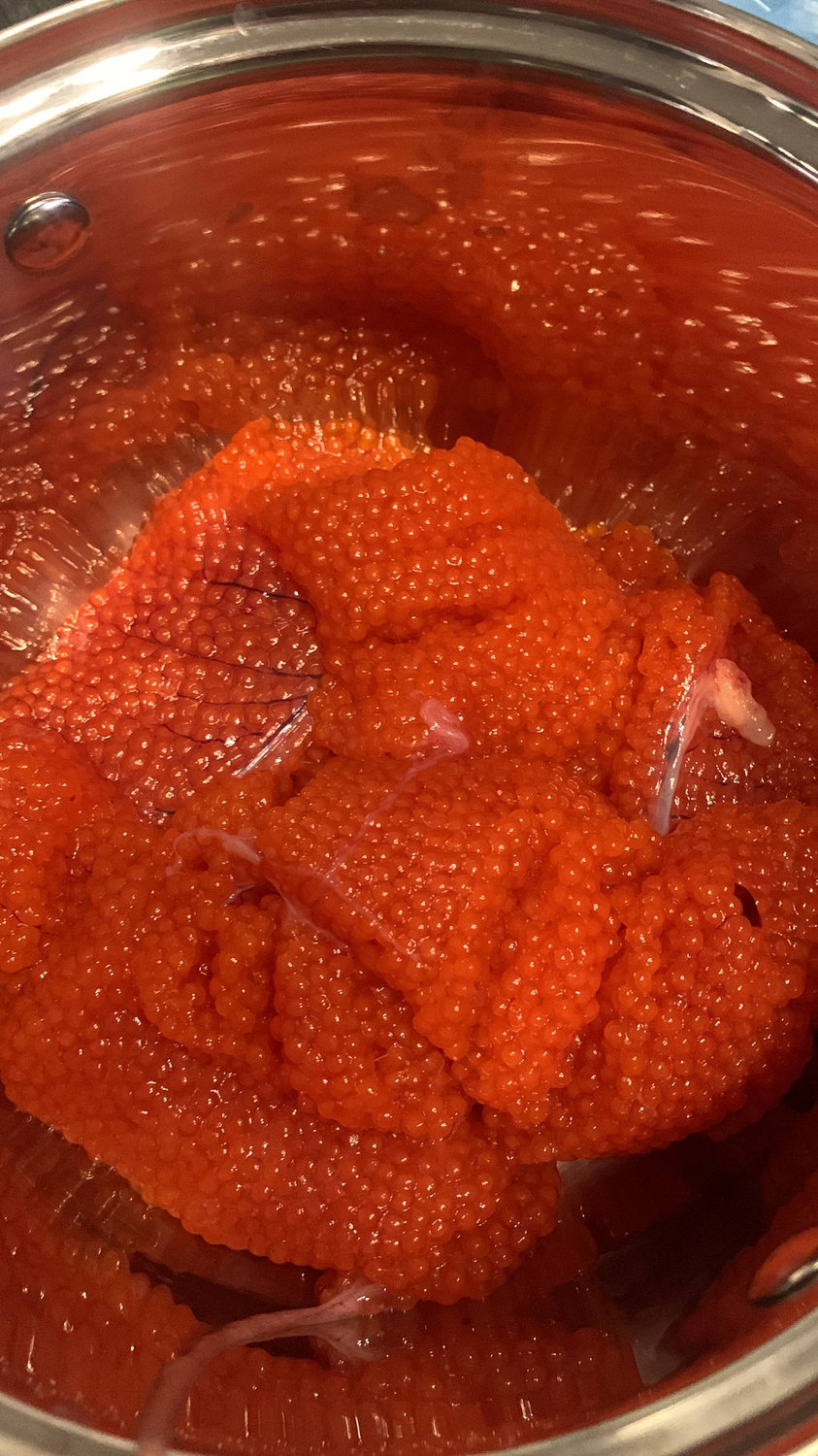 Про форель. Заказали из Северной Осетии, вчера забрала. Рыбку обещали 3-3,5, а пришла 5+. Там икры полкило! Вот сейчас воюю с ней. Попробую посолить.