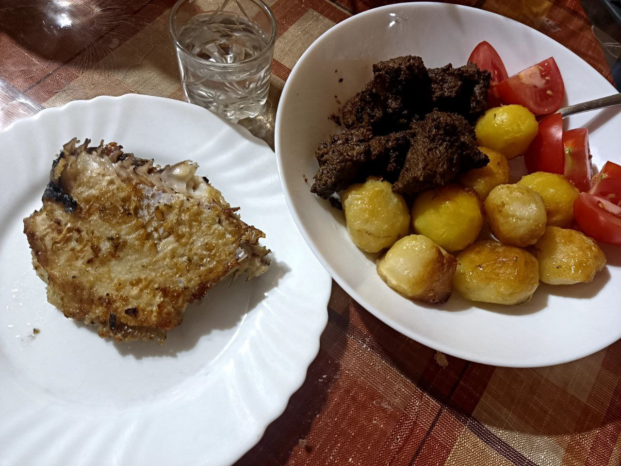У меня сегодня царский пир намечается, по крайней мере его обещали, а я смиренно жду: жаренная молодая картошка (своя); жаренная камбала (морская); жаренные пирожки с фаршем (покупным); говяжья печень (коровья). ?