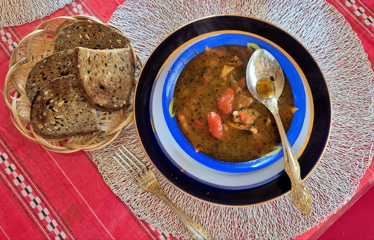 Чашушули по-селигерски) В смысле, помидоры в нем селигерские, от Наташи-Паркерши. Классный лайфхак для этого блюда - заморозить порезанные на половинки помидор. Шкурка снимается одним движением, не надо пачкать терку. От старательности я даже с перца сняла шкурку. А телятину заменила на индейку. Волшебное блюдо.