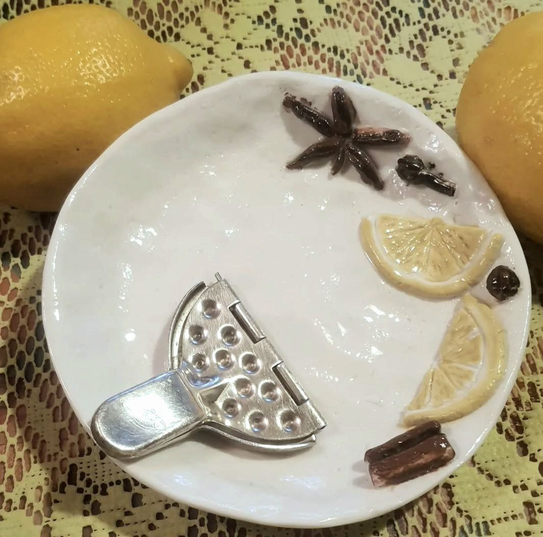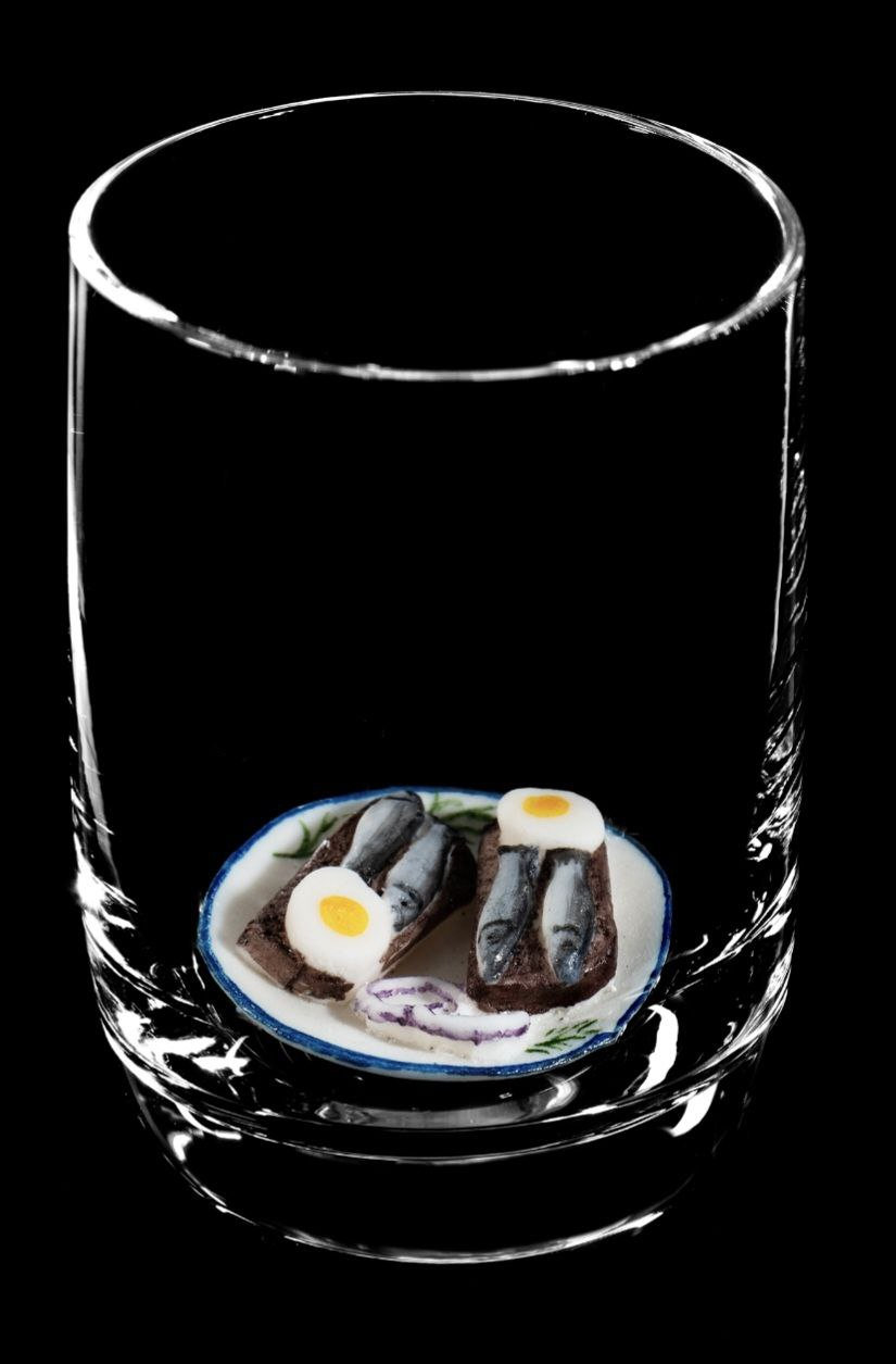 Думаю технология такова: в рюмку впаивают или вклеивают миниатюрную фарфоровую тарелочку с фарфоровой же имитацией бутерброда.