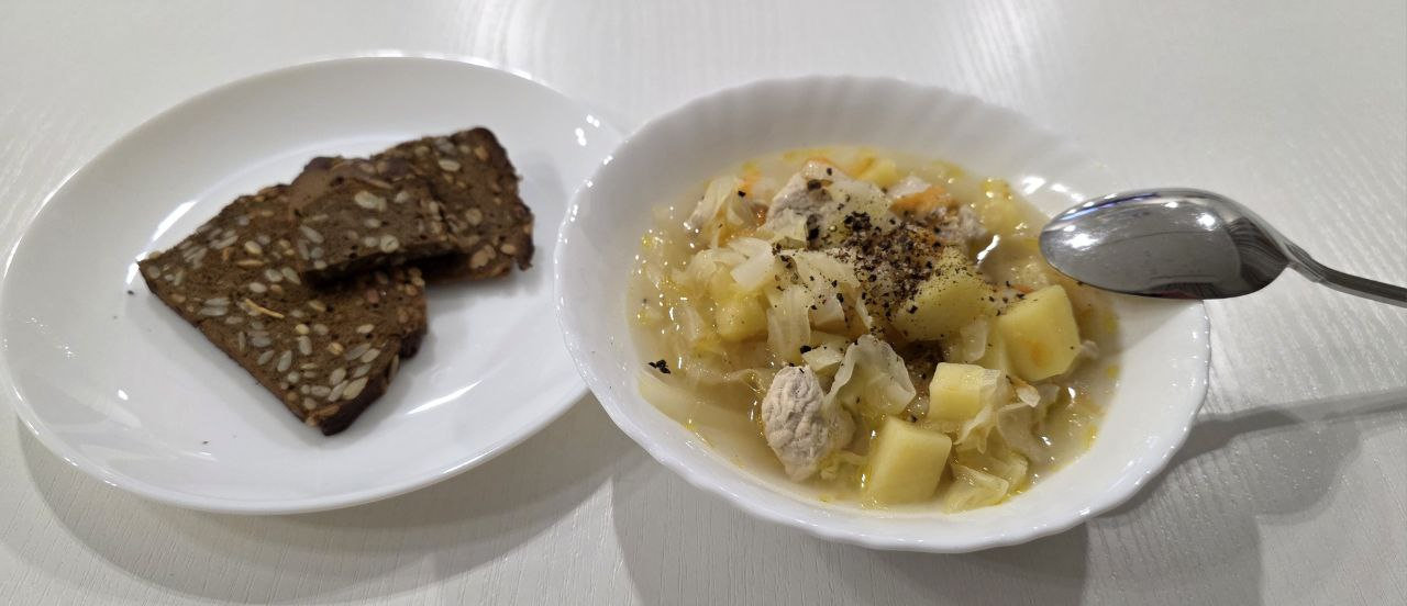 Тут ещё борщ был, но я его не успел во время сфоткать ). Пока за телефоном ходил, кто-то половину съел ?♂