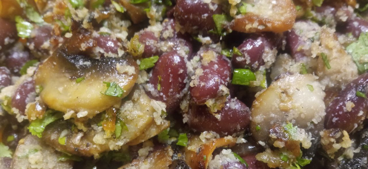 Продолжаем предновогоднею дегустацию...фасоль красная, шампиньоны обжаренные с луком, грецкие орехи, немного чеснока и кинза. Соль, перец по вкусу, заправка на любителя...масло, майонез.
