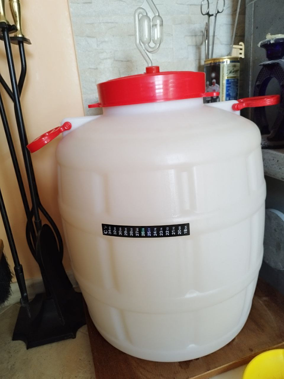 Сначала ставим сахарную брака. 10 кг сахара, получается 45-47 л Браги.
