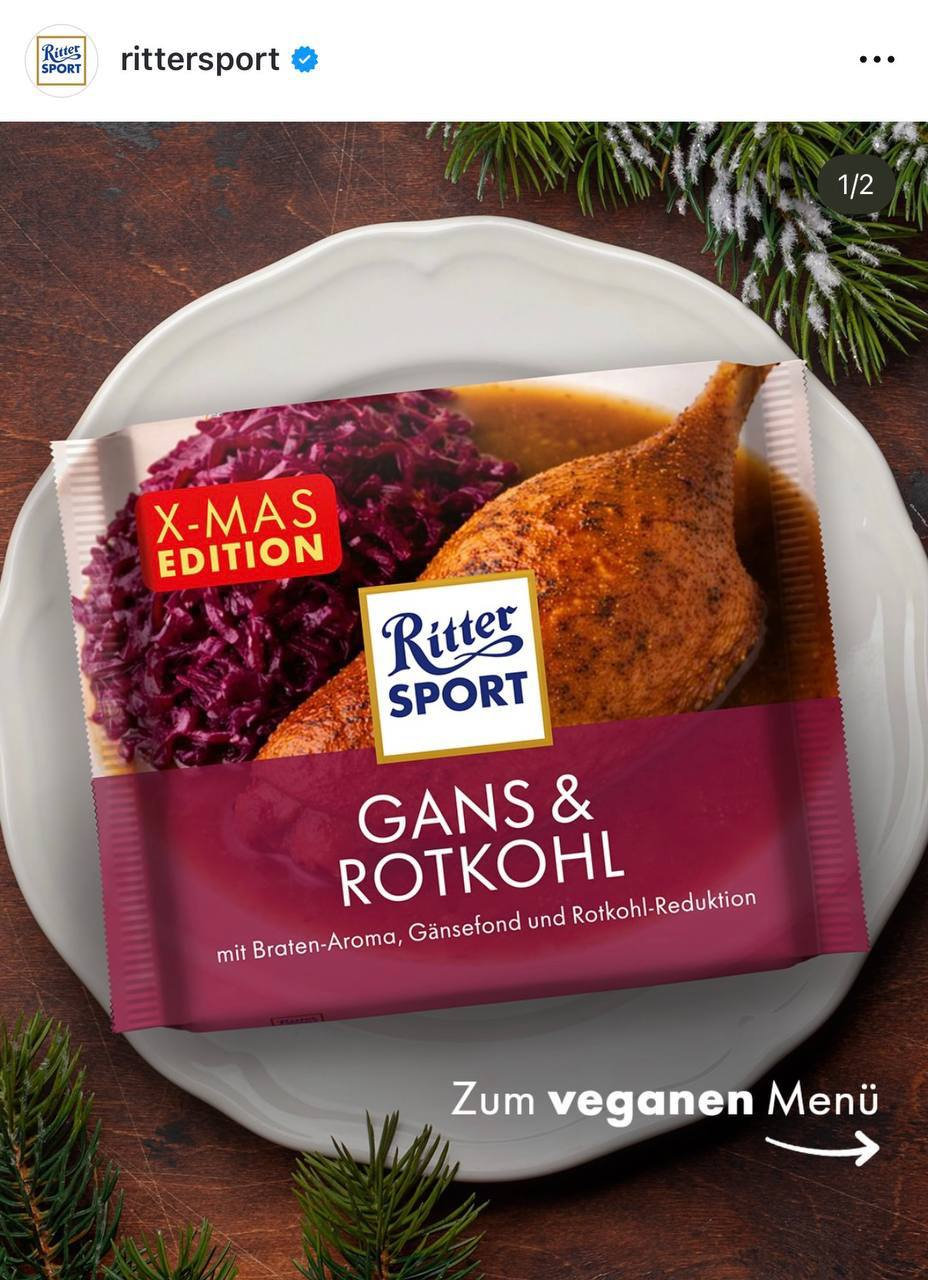 Для любителей странных сочетаний: Ritter sport выпустил следующие странные вкусы на рождество…🍫