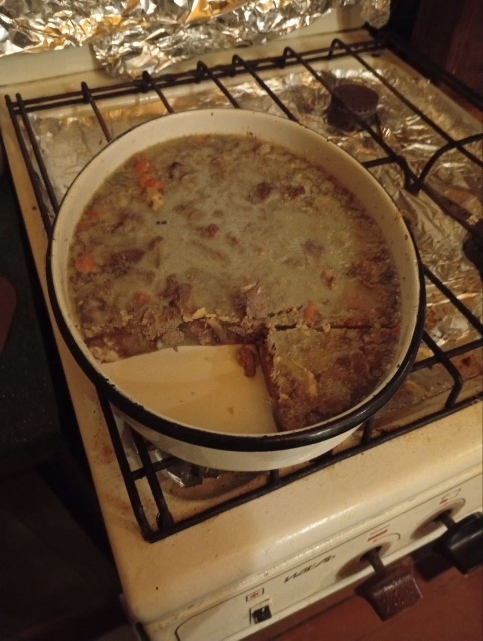 Мой пёсик их пожалеет. Простое заливное, 10% желе, 90% мяса, на гарнир овощи тушёные, и крупы, остроты не добавлял.