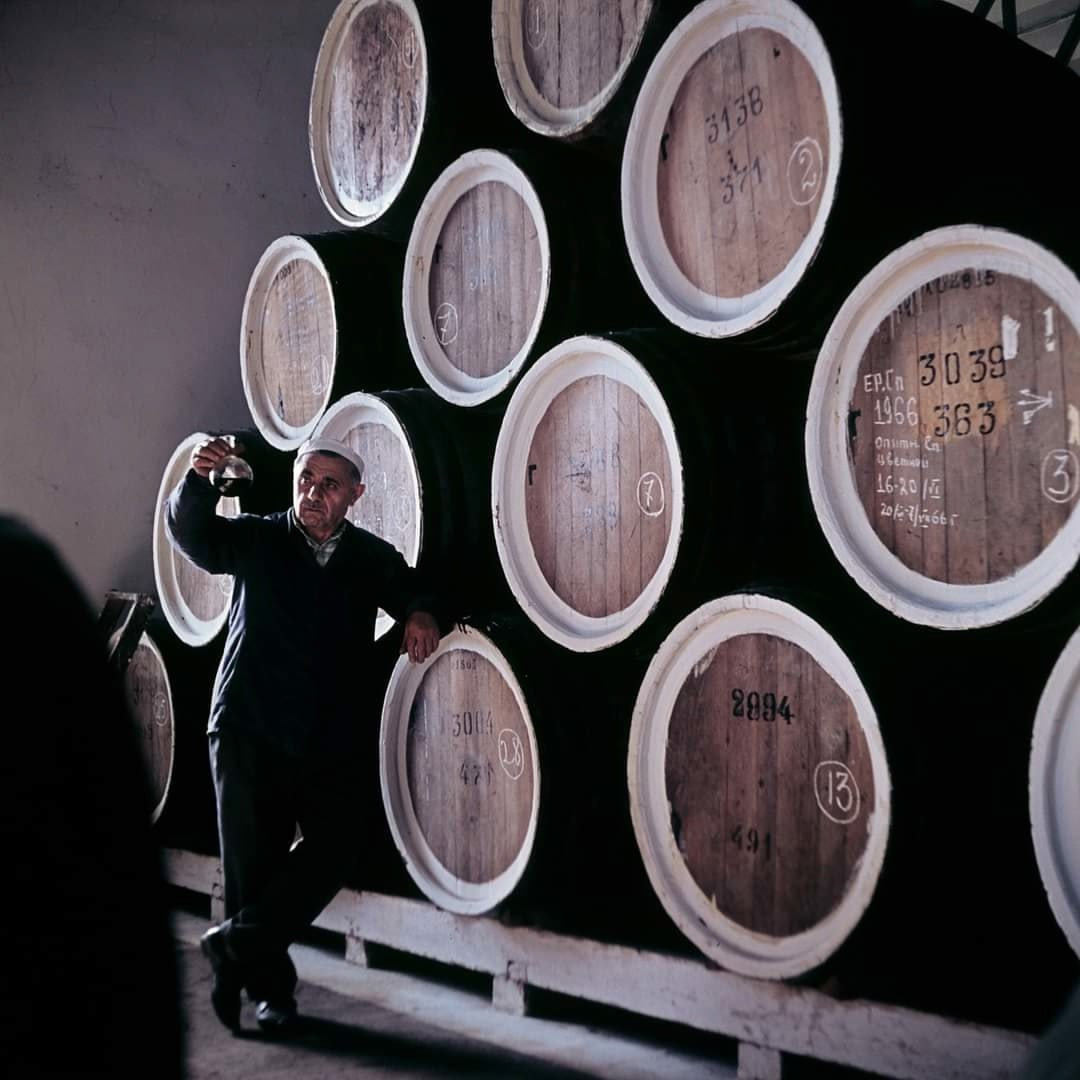 Бочки с коньяком в хранилище Ереванского коньячного завода. Армянская ССР, 1966 год.
