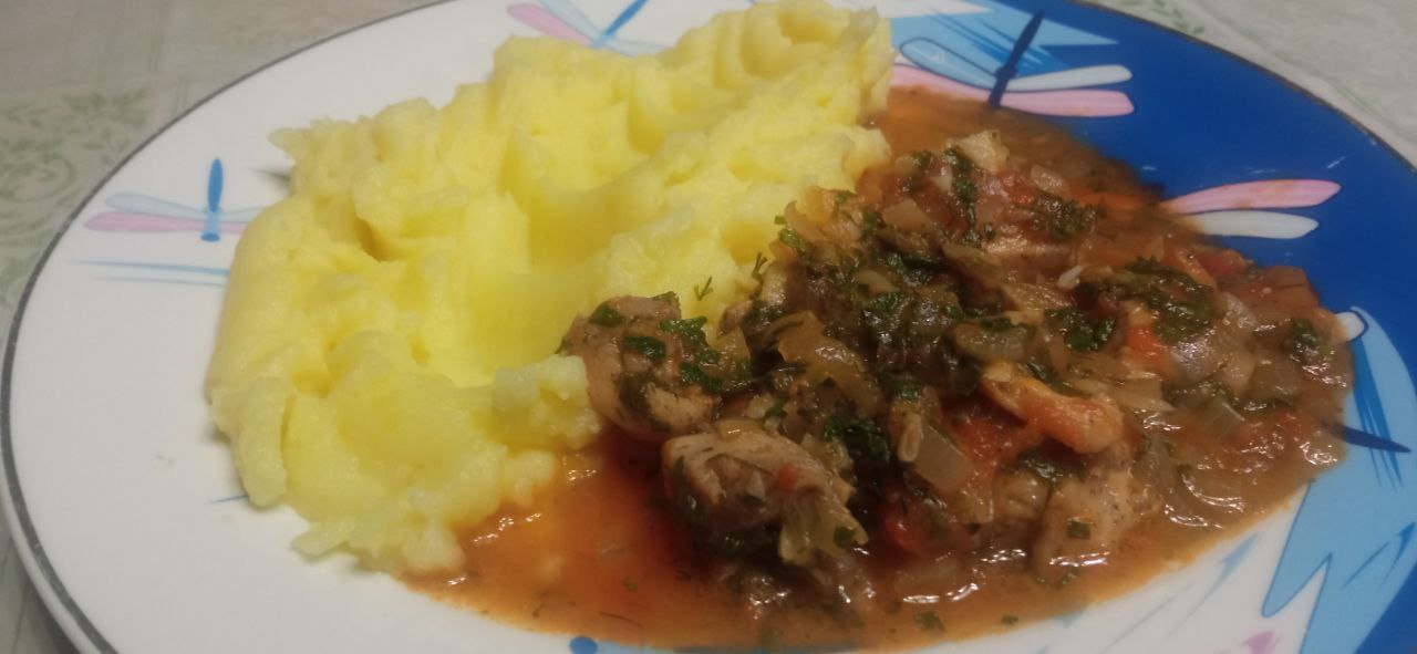 Деревенский интернациональный ужин. Пюрешка и грузинские мотивы... Чахохбили из курицы👌