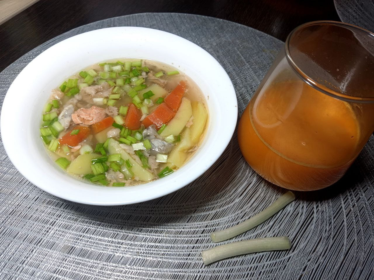 Сегодня жирнющий суп из форелевых голов, животов и плавников )). Я его поименовал "Финской ухой".