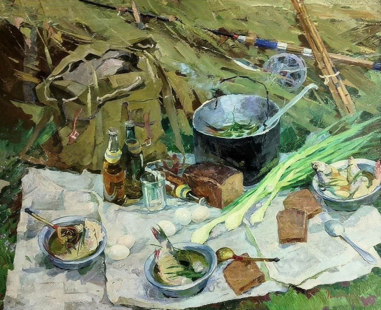 «Уха на Селигере». 1977 год. Холст, масло; 126,5 х 197,5 см. (Тверской государственный объединенный музей).