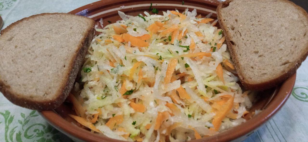 Салатик деревенский...зеленая редька с морковкой👍