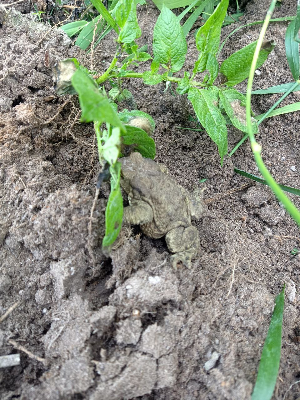 Пока копал на глубине штыка лопаты в земле сидела вот такая жаба )). Хорошо, что ее не разрубил случайно. Ускакала в мои заросли травы ?.