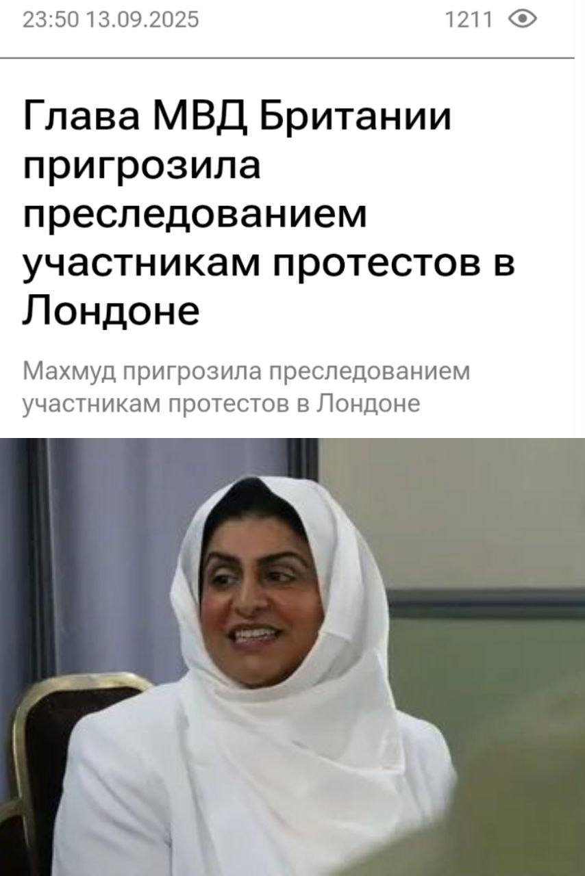 Глава МВД Великобритании уроженка Пакистана Шабана Махмуд угрожает преследованием участникам массовых акций протеста против неконтролируемой миграции в Лондоне.