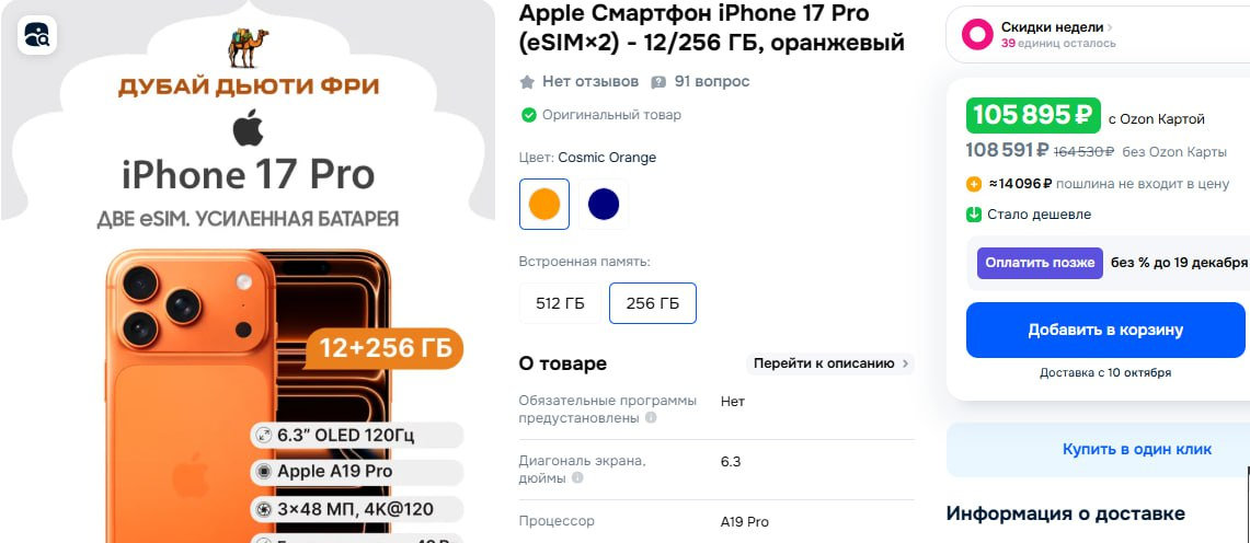 На озоне цена рыжего 17го упала до 105 000 рублей...