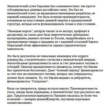 Про Германию не совсем так. Доля правды, что дешевая энергия - лишний плюс в развитие - безусловно. Но не только энергия (нефть, газ). Если бы дешевая энергия была бы залогом всего, то у нас должно было бы цвести все. А все не цветет, островками только.