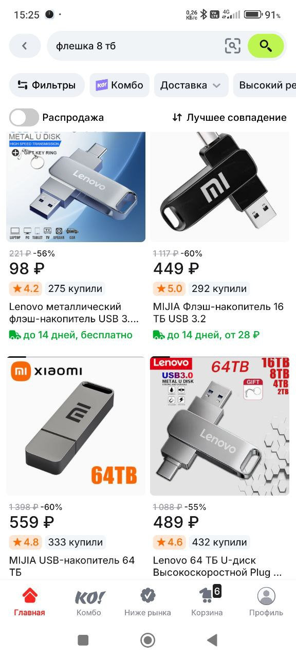 Смотри, что есть на AliExpress! Lenovo USB 3.2 Флэш-накопитель 16 ТБ за 645 ₽ - уже со скидкой -41%
