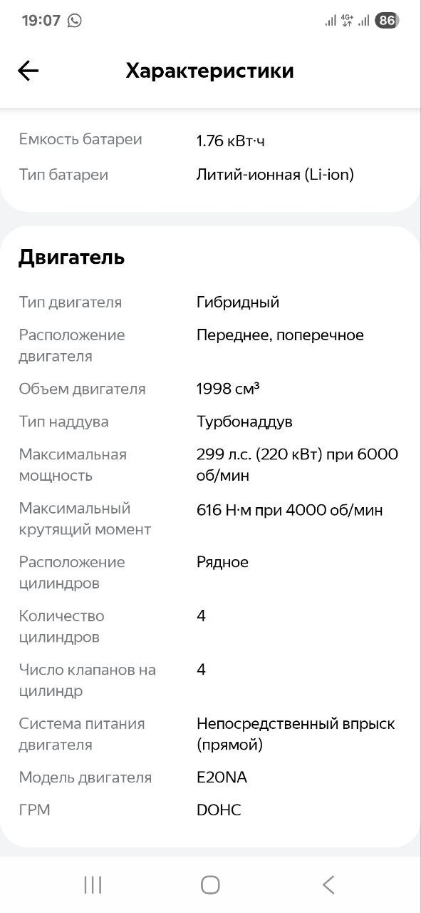 Гибрид: 1,5-литровый мотор на 150 л.с. + батарея 65 кВт⋅ч. Запас хода — 370 км на электротяге и до 1400 км суммарно.