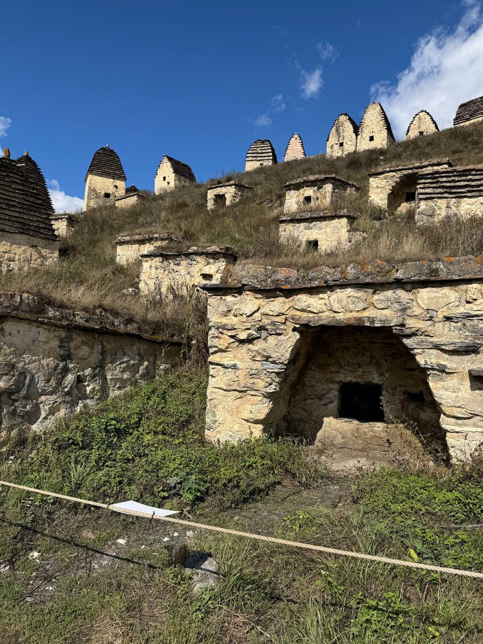 А это кладбище. Как ни странно, тот похоронены 10 тысяч человек. Причем, по Зооастризму, их не закапывали, а укладывали в эти склепы. В них полно костей и черепов. Некоторые туристы раньше лазили и увозили черепа на память, на шкаф поставить. Только пару лет назад запретили это делать.